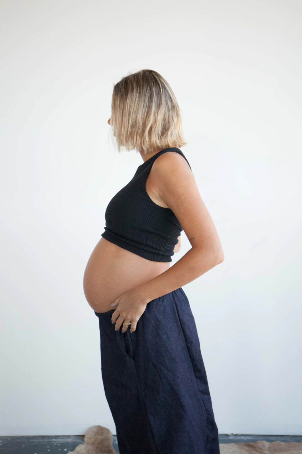 Cuenta con bolsillos delanteros y una cintura elástica que se adapta y crece con tu panza, haciéndolo ideal para usar antes, durante y después del embarazo. Aunque no tiene faja, su diseño permite que lo uses cómodamente en todas las etapas de tu maternidad.